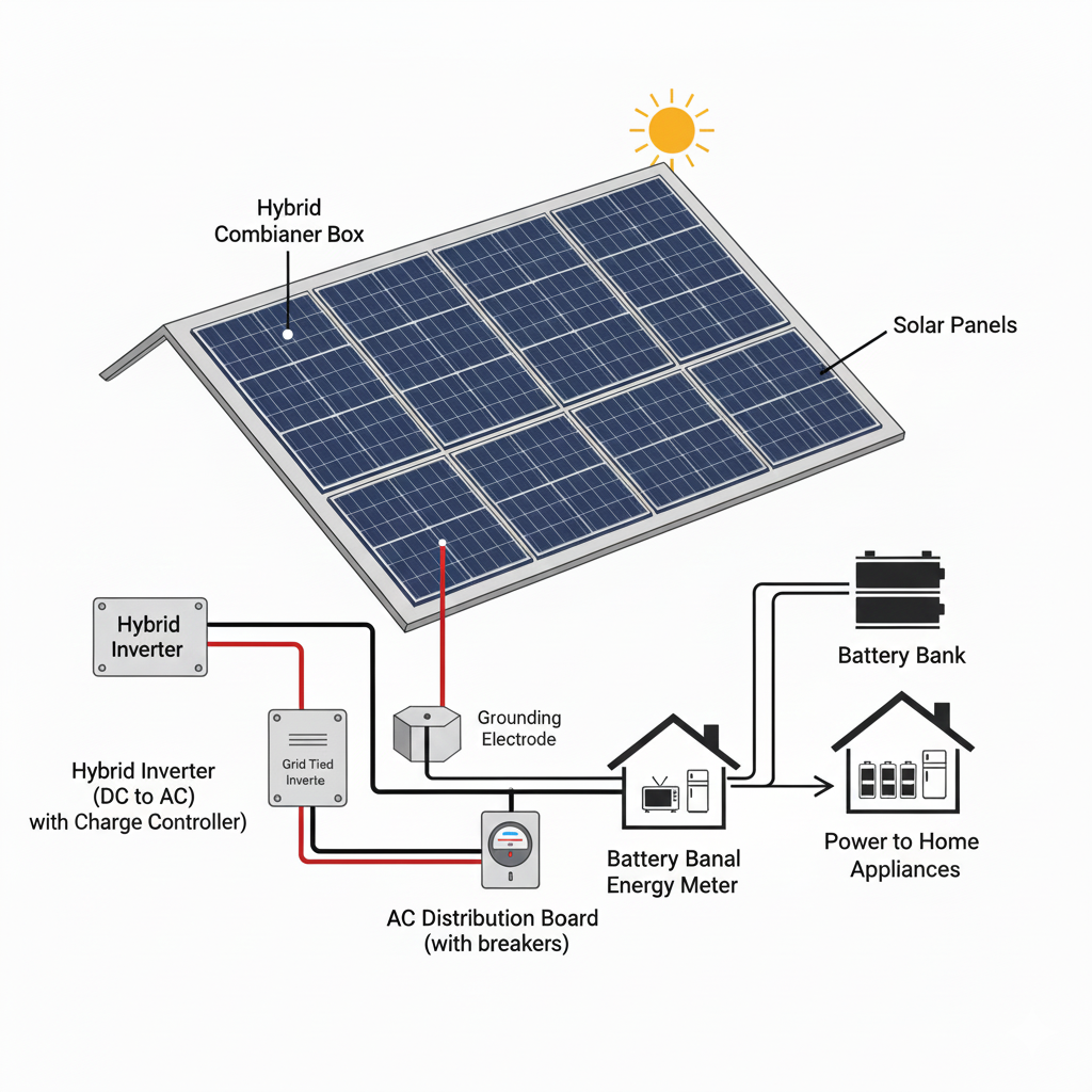 Hybrid Solar Power is advanced level of ON-Grid System, which employs battery bank to store the power, even when Grid supply is not available.