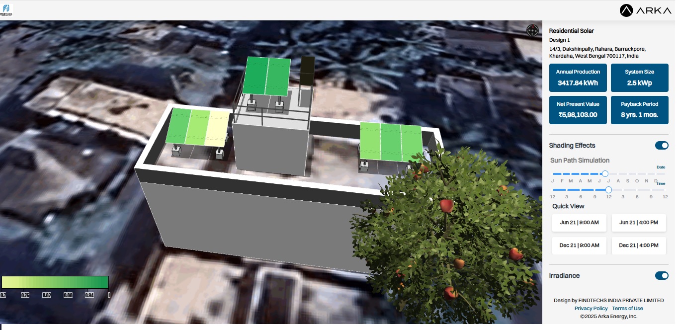 Software simulation & Precise shadow analysis to understand maximum possible generation through out the year